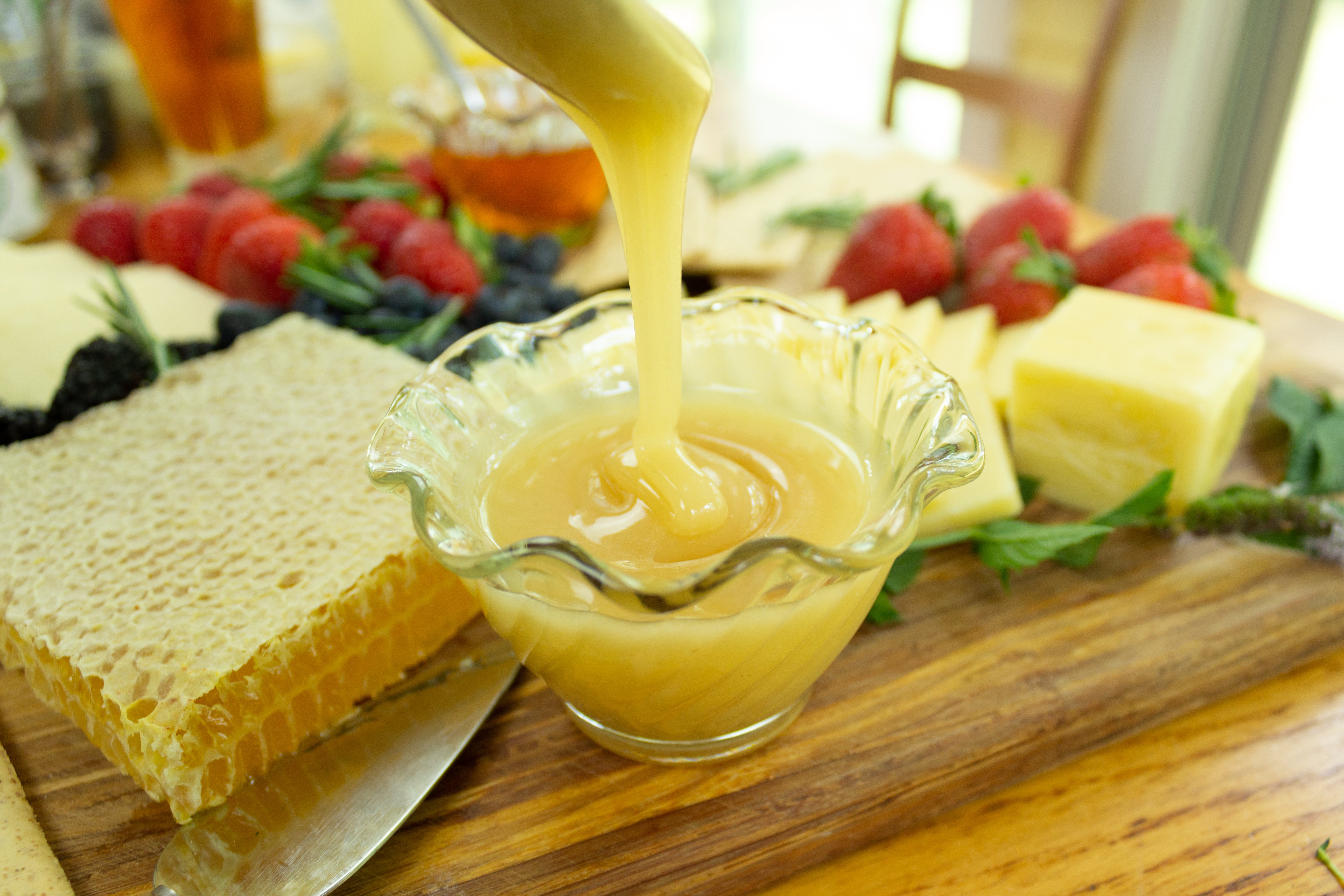 Raw honey has never been heated or finely filtered, so it naturally crystallizes and retains all the pollen, enzymes, and protein naturally present in honey. We filter out big pieces of wax and any debris, but otherwise, our raw honey is untouched and unaltered, straight from the bee hive.